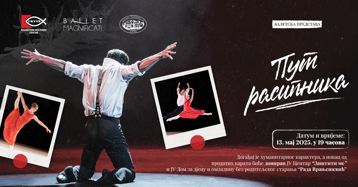 Putem plesa, muzike i izražajne koreografije "Put rasipnika" na scenu donosi snažnu poruku o ljubavi i oproštaju. Izvođenje ove baletske predstave je humanitarnog karaktera, a prikupljena sredstva biće namijenjena JU Centar "Zaštiti me" i JU Dom za djecu i omladinu bez roditeljskog staranja "Rada Vranješević". Organizator je Edukativno-kulturni centar IHTUS.