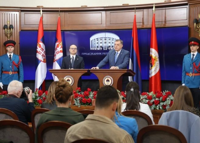 – Tužilaštvo BiH pokreće priču protiv mene, predsjednika Vlade Radovana Viškovića, ministara za navodni napad na ustavni poredak, ističući da je taj član u Krivičnom zakonu BiH, na koji se oni pozivaju, dopisao Kristijan Šmit kada je pisao svoje sramno odbacivanje određenih odredaba u sam zakon, na šta nije imao pravo. To je samovolja i u funkciji je bošnjačkih interesa da putem navodnih neustavnih institucija provode neustavnu odredbu, koja nije ni zakon nego odluka – istakao je Dodik.