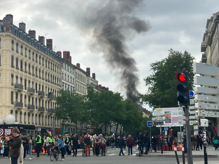 Tri policajca navodno su povrijeđena, a tri osobe su uhapšene. Ukupno je 6.500 ljudi učestvovalo u demonstracijama povodom Prvog maja u Lionu, navodi list.