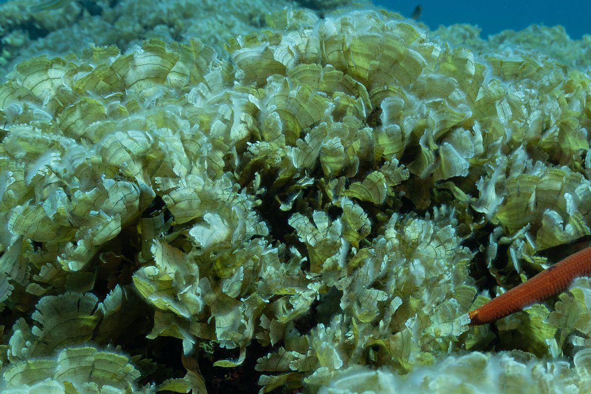 Smeđa alga je slična zavičajnoj algi naziva Padina pavonica, sa jasnom razlikom.