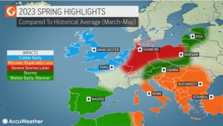 Meteorolozi "AccuWeathera" objavili su veliku prognozu za proljeće za Evropu.