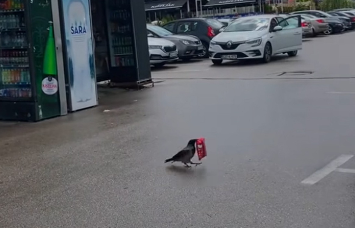 Kljunom otvori kesicu i počasti se. Tako otprilike ide snimak iz Sarajeva.