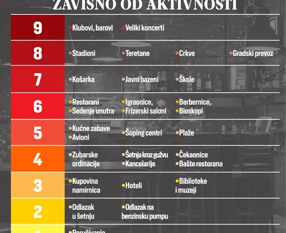 Na skali od 1 do 9 – gdje je najveći rizik da se zarazite FOTO