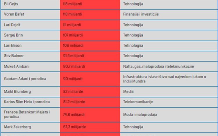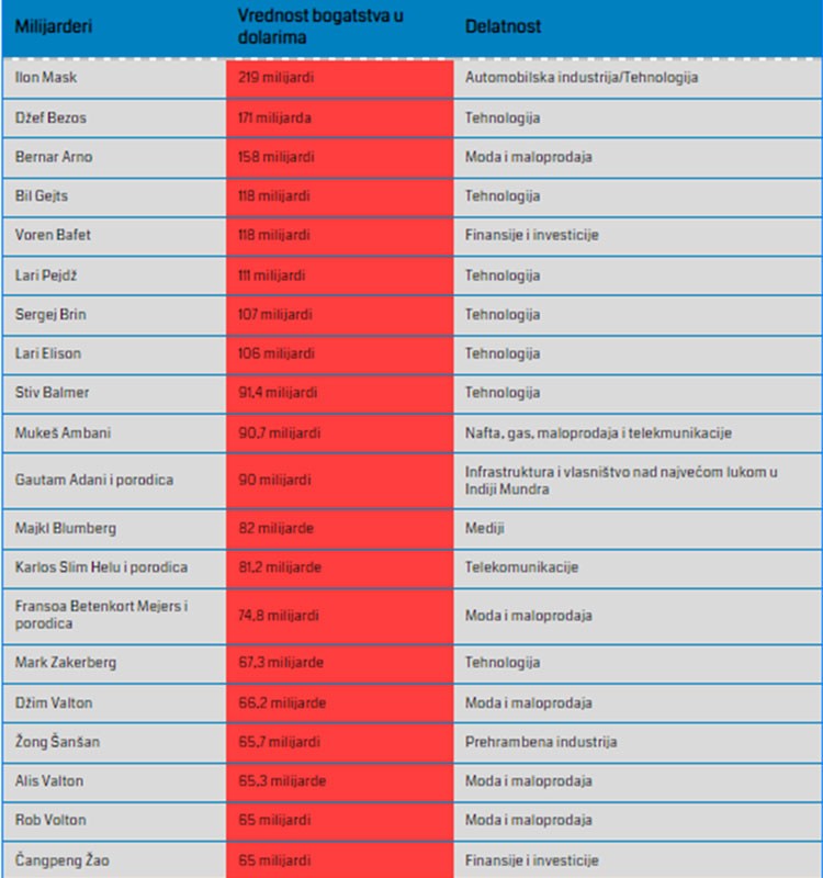Ipak, Forbs je pronašao više od 1.000 milijardera koji su bogatiji nego što su bili prije godinu dana. A tu je i 236 pridlošlica koje su postali milijarderi tokom prošle godine – uključujući i prvi put milijardere sa Barbadosa, iz Bugarske, Estonije i Urugvaja, prenosi Euronews.
