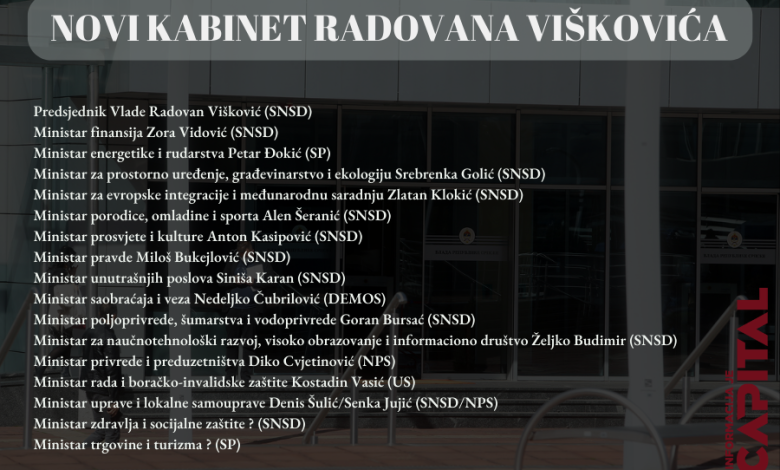 Četiri aktuelna ministra zadržaće svoje resore i novom kabinetu Radovana Viškovića, dva ministra će na čelo drugih resora, a u novoj Vladi Srpske sjediće deset novih imena, otkriva CAPITAL.