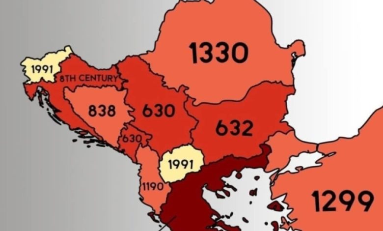Na društvenim mrežama, odnosno na Facebooku se pojavila karta s oznakom "Year Of First Establishment of Balkan Countries", odnosno godina prvog osnivanja balkanskih država.