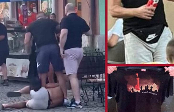 Na fotografijama koje su objavljene na društvenim mrežama vidi se i fotografija navijača sa tom majicom, kao i momenat kada ga nakoliko momaka šutira dok je na zemlji sa skinutom majicom.