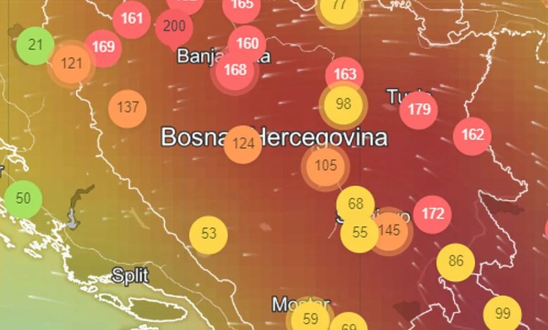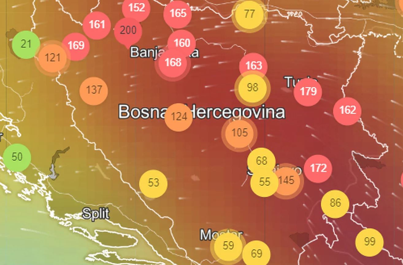 U Tuzli indeks zagađenosti vazduha česticama PM 2.5 je 172, Banjaluci 168, a u Prijedoru čak 200. U Bosanskoj Krupi izmjerena zagađenost ovim česticama je 169, a u Zvorniku 162.