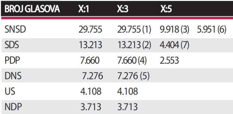 Naime, u Narodnu skupštinu Republike Srpske ulaze 83 poslanika, od kojih se 63 biraju direktno, a 20 ih ulazi preko kompenzacionih lista.